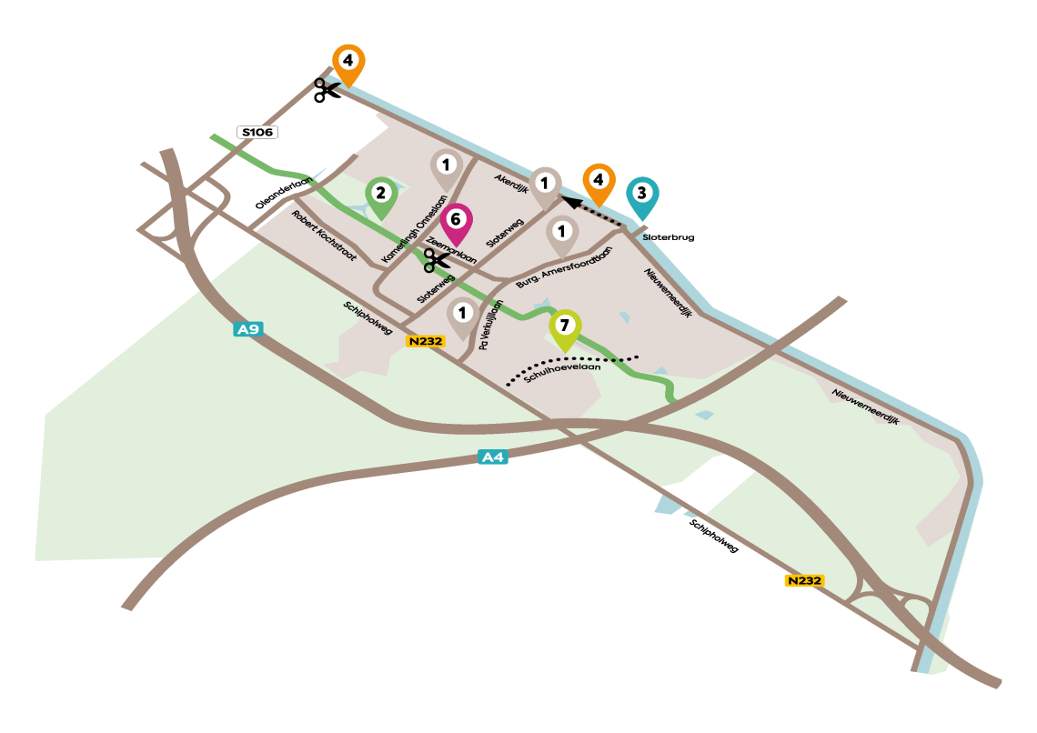 1. De snelheid verlagen van 50km/u naar 30 km/u op de hoofdwegen Kamerlingh Onneslaan, Sloterweg, Pa Verkuijllaan en Burgemeester Amersfoordtlaan. Lees meer.